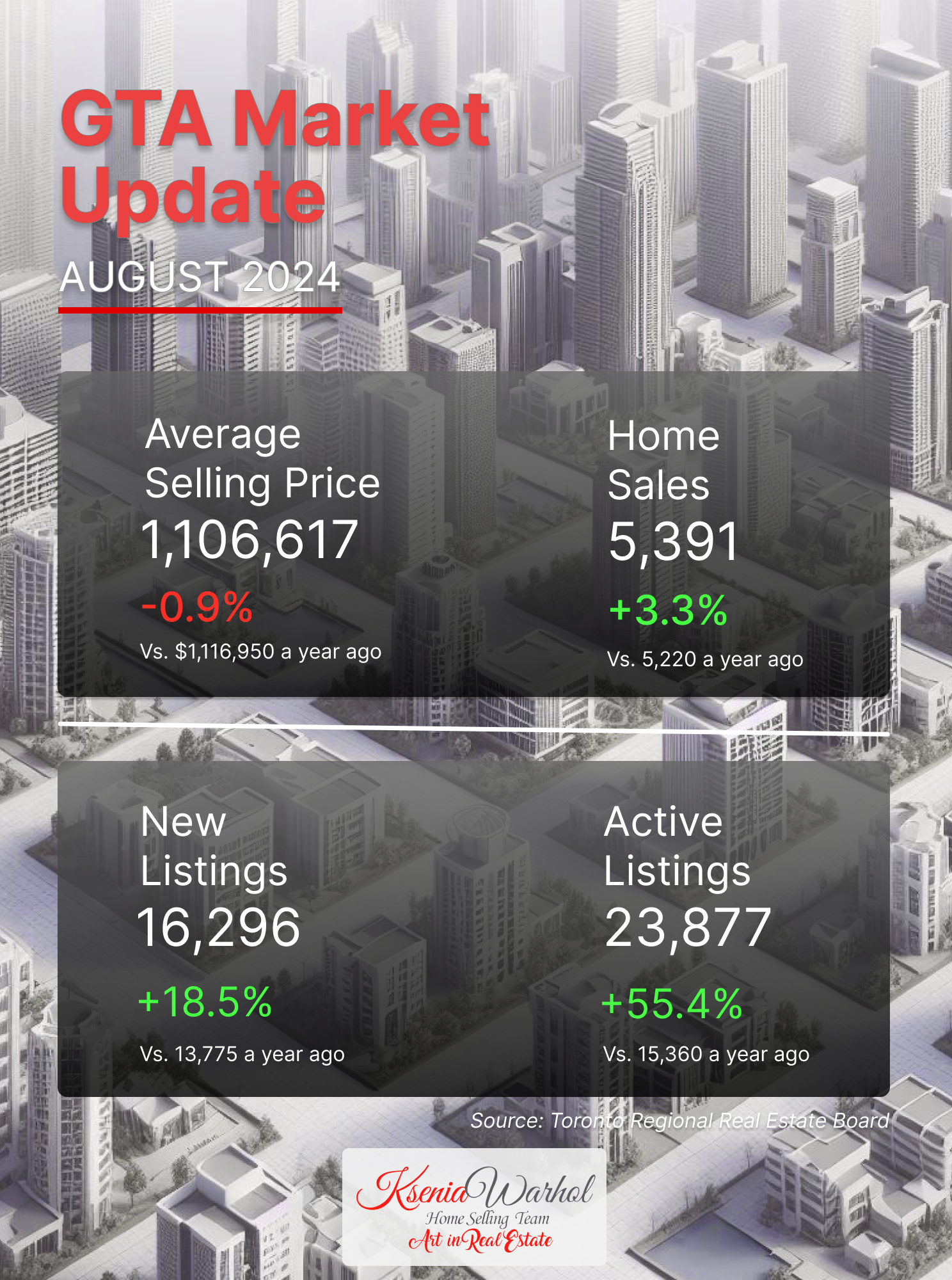 As we move into the late summer months, the Greater Toronto Area (GTA) real estate market continues to navigate through a complex landscape of economic factors and shifting buyer behaviors. Let's dive into the key trends and statistics shaping the market in August 2024.